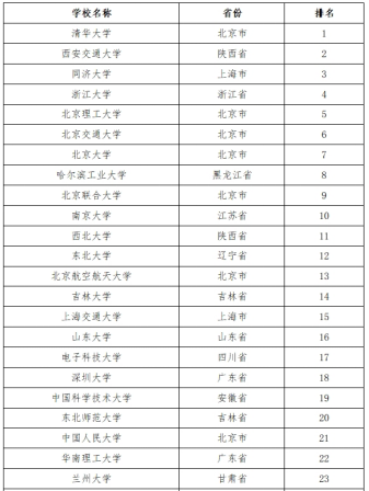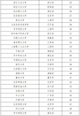 表1 全国普通高校计算机基础教学发展指数总榜单(前49名)