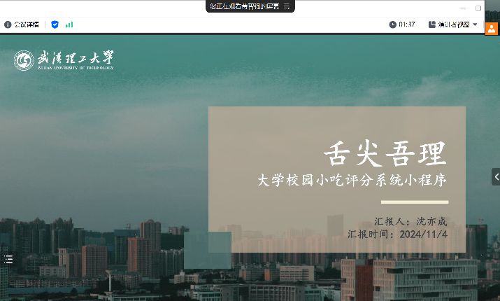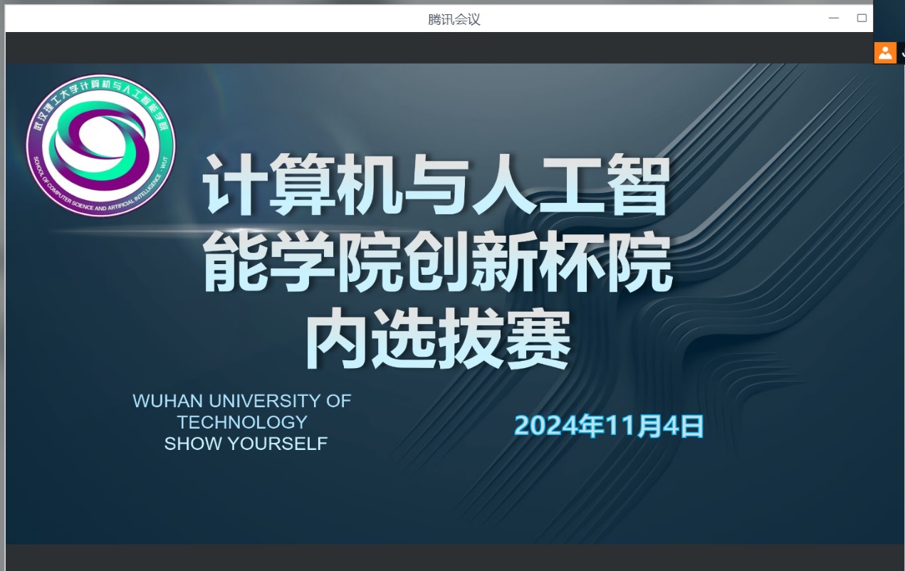 11月4日晚8点,武汉理工大学计算机与人工智能学院“创新杯”院内选拔赛如约开展。院赛专家评委石林老师和各辅导员列席本次选拔赛。各团队经过两个小时的展示比拼,最终“基于微调大模型的智能法律辅助决策与问答系统”、“新叶之苗——大学新生智慧迎新系统”、“ 舌尖吾理——基于微信小程序的餐饮评价系统”三个团队优胜。