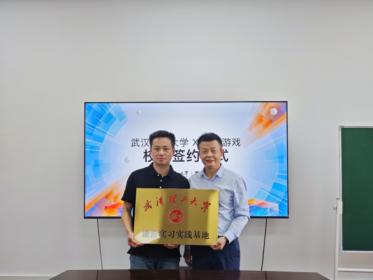 在全体与会嘉宾的共同见证下,陈采军书记与黄建良总经理分别代表双方在合作协议上签字,并举行 “武汉理工大学-途游实习实训基地”授牌仪式。