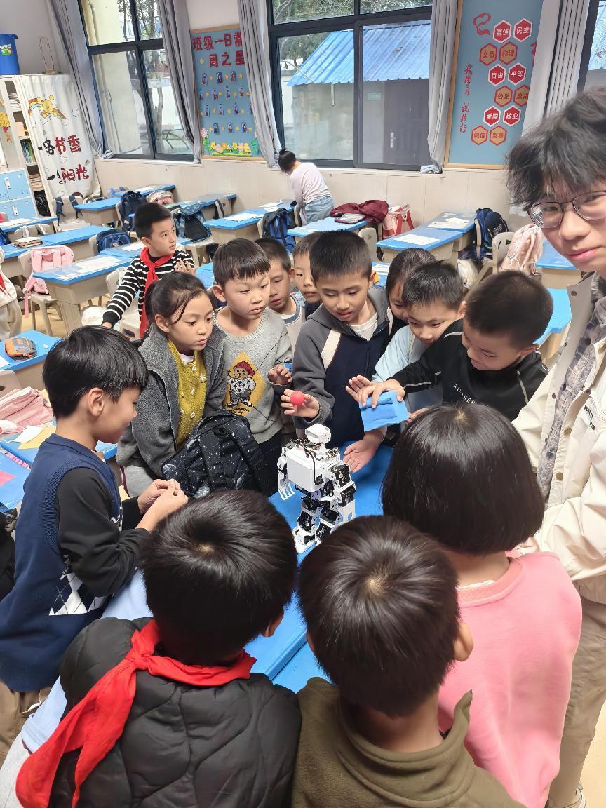 为了让孩子们更直观地感受人工智能的魅力,志愿服务队精心准备了机器人实操环节。当一个个造型精巧的智能机器人在教室中“迈开脚步”“做出动作”时,孩子们的惊叹声此起彼伏。