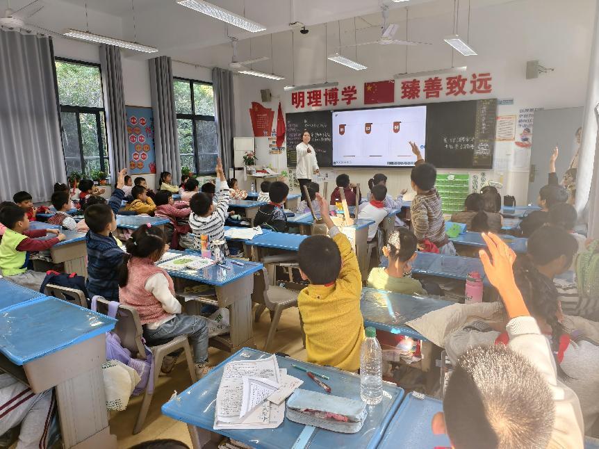 活动伊始,志愿者们以孩子们熟悉的科幻电影《流浪地球2》为切入点,在课堂上展示了影片中人工智能MOSS的精彩片段。“同学们,大家知道这个能思考、能决策的MOSS是什么吗?”志愿者的问题瞬间点燃了课堂氛围。通过生动的画面和通俗的讲解,志愿者们将抽象的人工智能概念转化为孩子们能理解的“科技伙伴”形象,从AI的定义、发展历程到其在日常生活中的应用,如智能语音助手、人脸识别等,志愿者们用一个个鲜活的案例,为孩子们搭建起认识AI的知识框架。 课堂上,孩子们的好奇心被充分激发,纷纷举手提问。“大哥哥,人工智能会像电影里那样‘造反’吗?”“姐姐,我们什么时候能有自己的AI机器人呀?”面对孩子们天马行空的问题,志愿者们耐心解答,既科普了AI的技术原理,又引导孩子们正确看待人工智能的发展,传递了“技术服务人类,创新驱动未来”的正向理念。