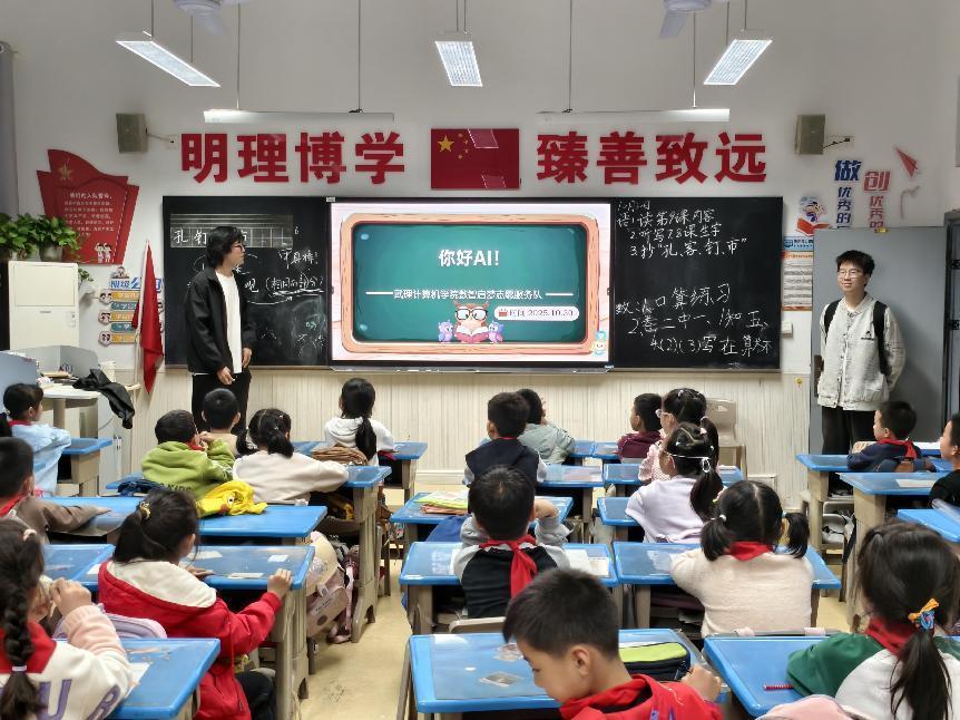 在武汉理工大学附属小学的课堂上,志愿者们以“AI是什么”为引,用生动形象的语言为同学们揭开人工智能的神秘面纱。“同学们,你们知道吗?我们平时用的语音助手、刷的短视频推荐,都藏着人工智能的身影哦!”志愿者的话语瞬间点燃了孩子们的好奇心,一双双小手高高举起,一个个问题接连不断,课堂氛围热烈非凡。