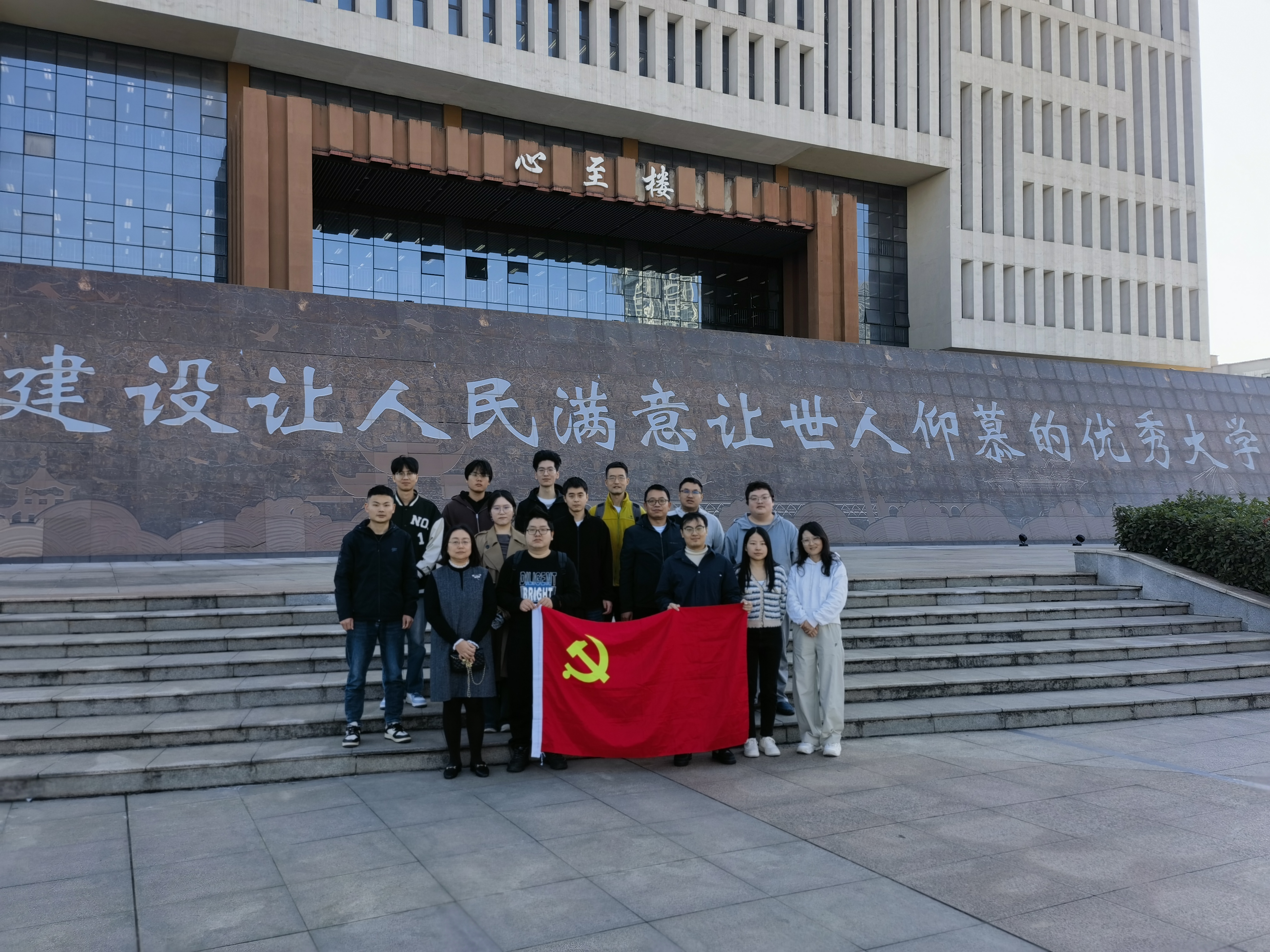 图1 校史馆广场上的红色印记:师生党支部与党旗合影,锚定校史足迹前行方向