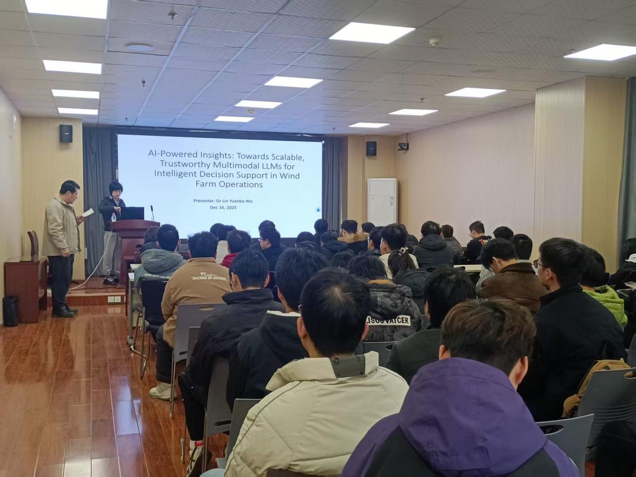 为推动多模态大语言模型与能源领域的交叉创新,12月16日15:30,武汉理工大学计算机与人工智能学院青年教师联合会博学讲坛在学海楼510开讲。本次讲座由我院钟忺教授邀请,特邀英国华威大学武琳教授担任主讲,围绕“迈向用于风电场运营智能决策支持的可扩展且可信的多模态大语言模型”展开分享,学院师生积极参与交流。